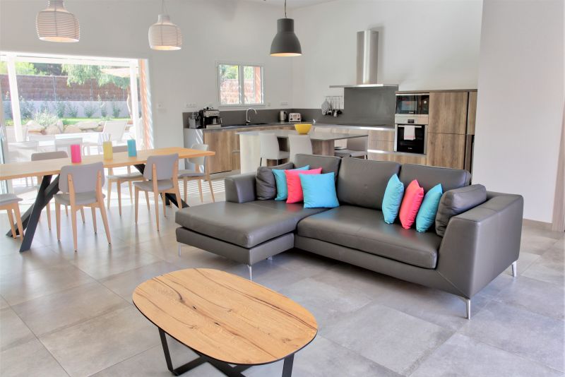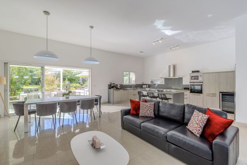 Pièce à vivre de 65m² très lumineuse avec canapés. La salle à manger vous permet de vous retrouver pour un bon repas autour d’une table pour 12 personnes. La cuisine ouverte est entièrement équipée et fonctionnelle. Lave-linge, sèche-linge.