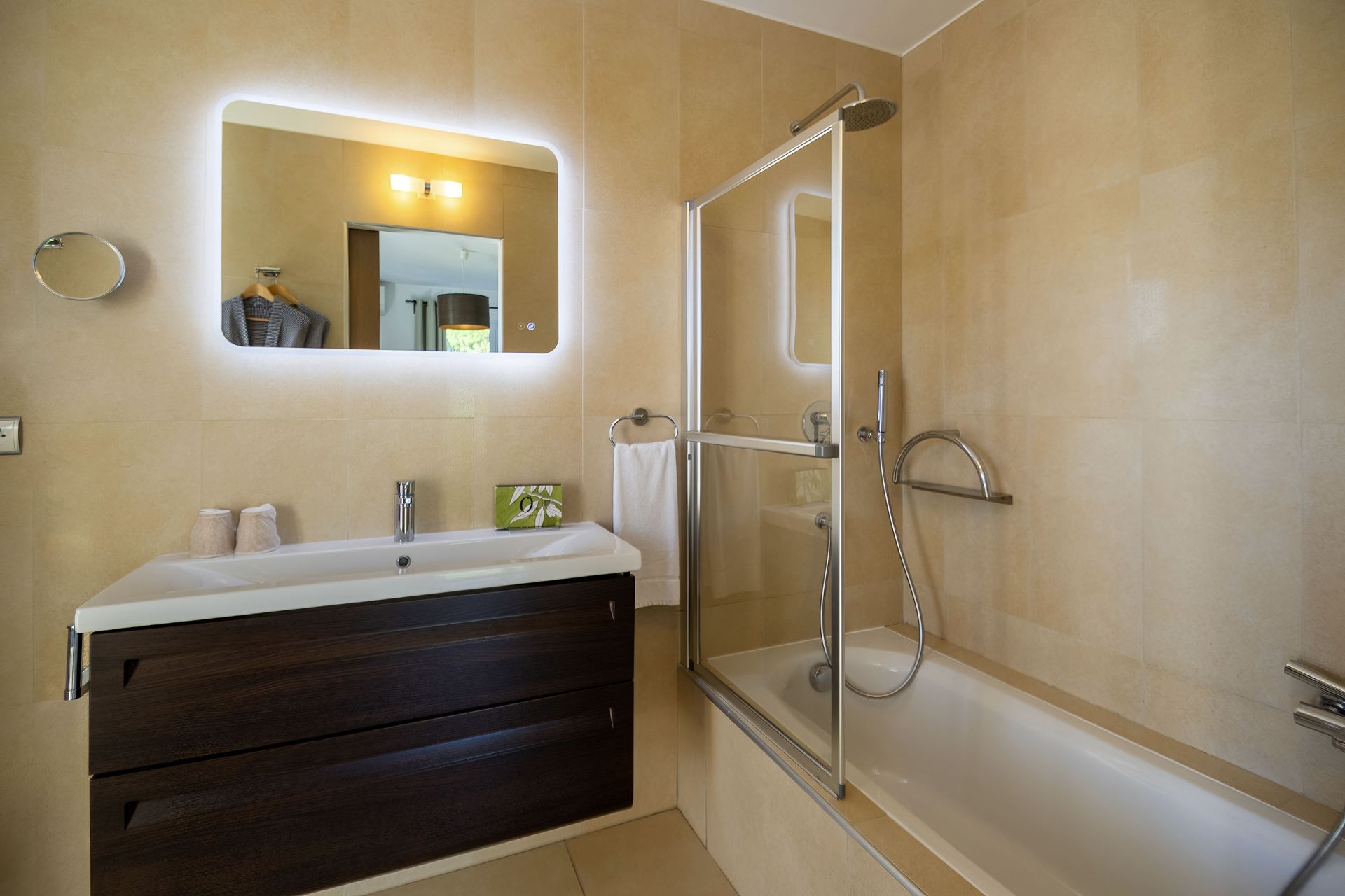 Chaque chambre dispose de sa propre salle de bain privée avec baignoire ou douche, d’un WC, d’une TV et d’un dressing. Sèche-cheveux, linge et produits de bienvenue dans chaque salle de bain.