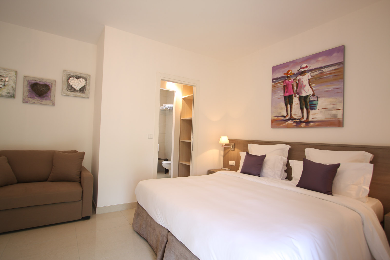 - Chambre 1 : 1 grand lit King size de 180x200cm ou 2 petits lits de 90x200cm à votre demande